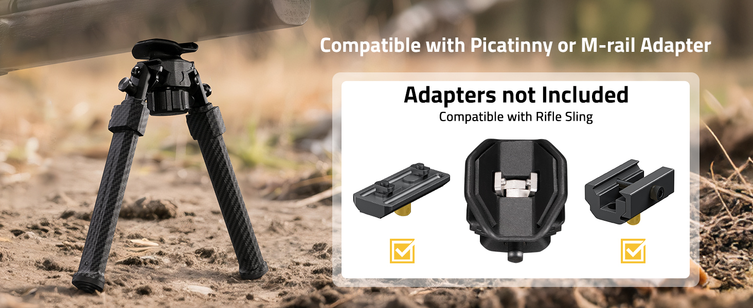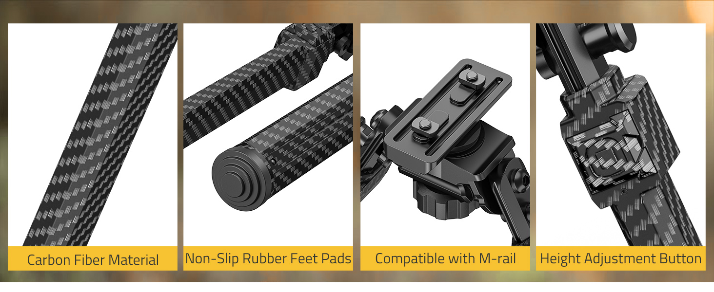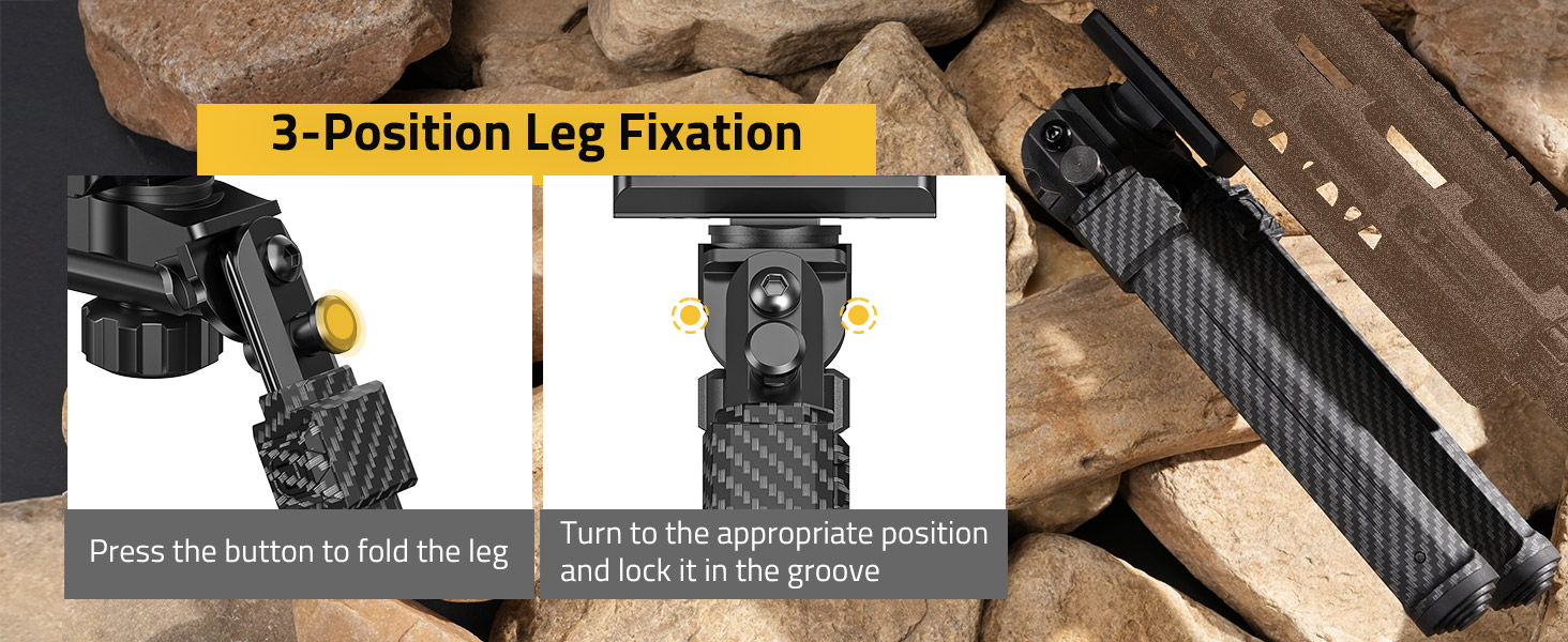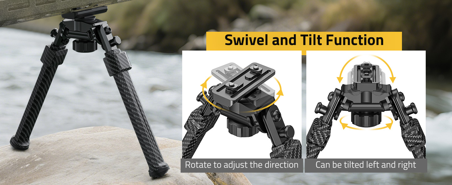• 【Picatinny Bipod - Quick Release Design】The carbon fiber bipod provides a reliable installation process, easy to use, and can be quickly attached and detached as needed. The head width and lever lock can be adjusted to adapt to different picatinny widths.