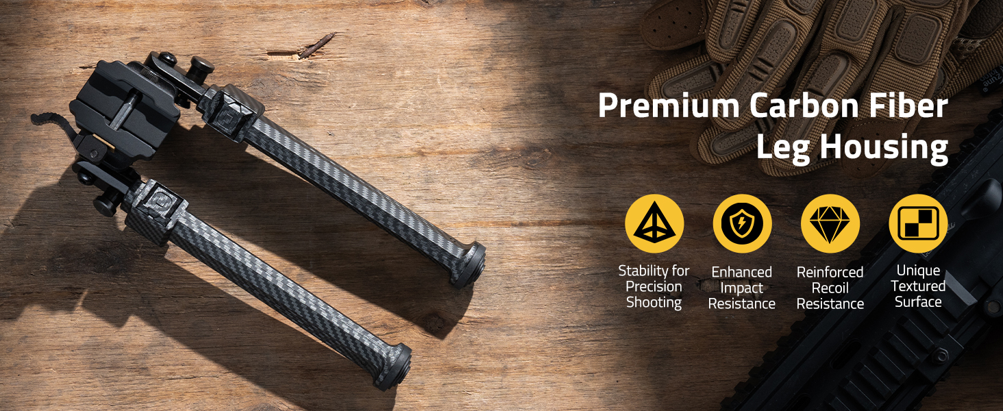 • 【Lightweight Material】This quick release rifle bipod is made of sturdy carbon fiber and polymer, able to withstand the rigors of outdoor use while reducing weight.